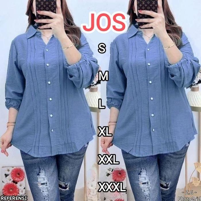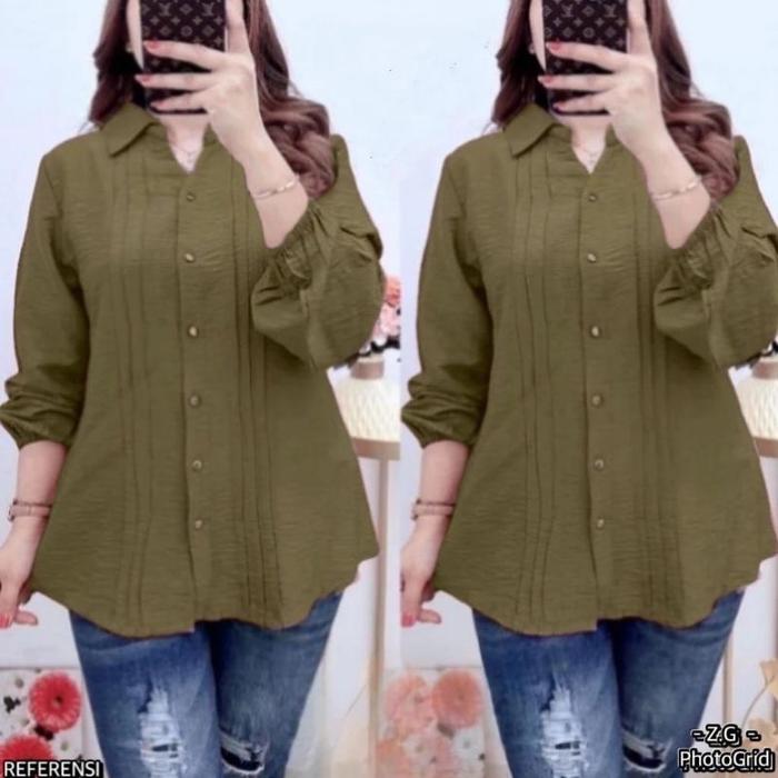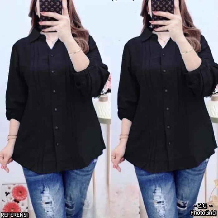 KEMEJA KERJA WANITA BAHAN CRINGKLE AIRFLOW PREMIUM - REMPEL HITAM, M