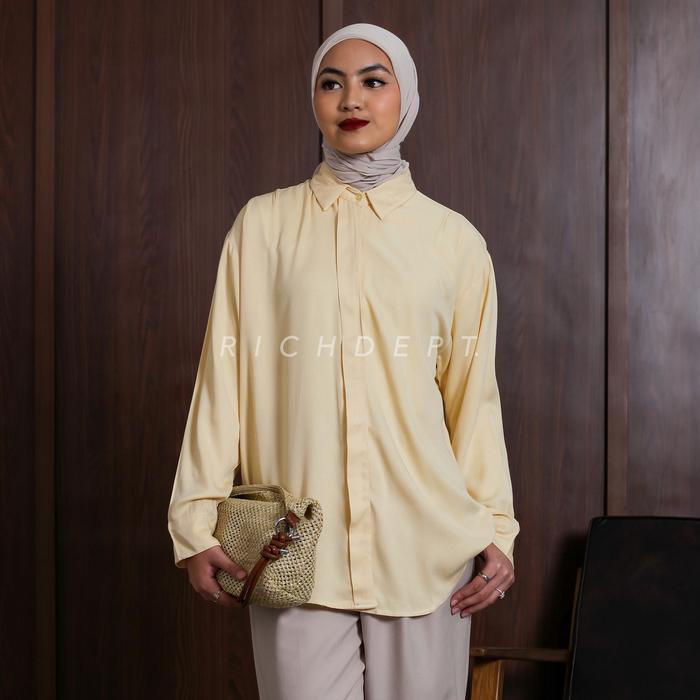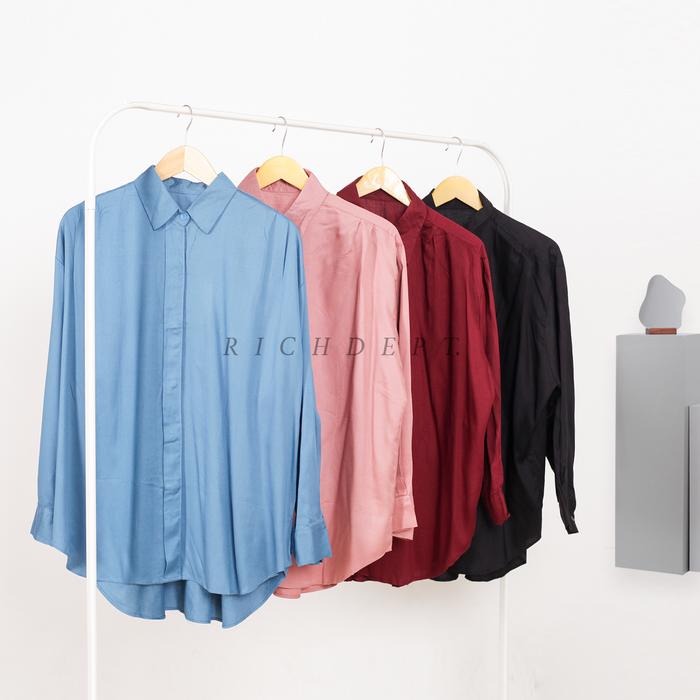 RICHDEPT LEXA SHIRT | KEMEJA WANITA MUSLIM TANGAN PANJANG OUTFIT HIJAB | BAJU RAYON TWILL - BLACK, SIZE 2 LD 114 CM
