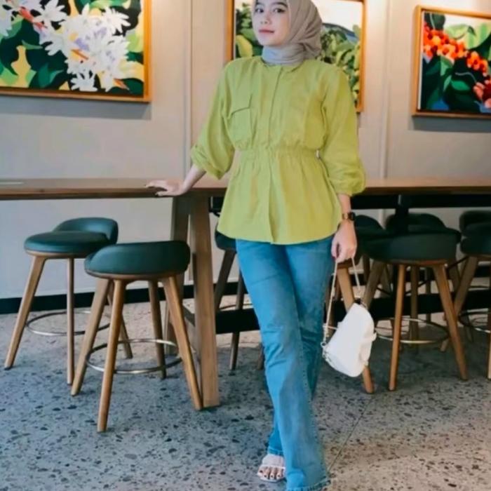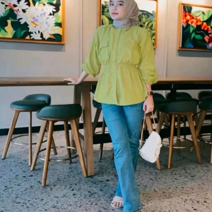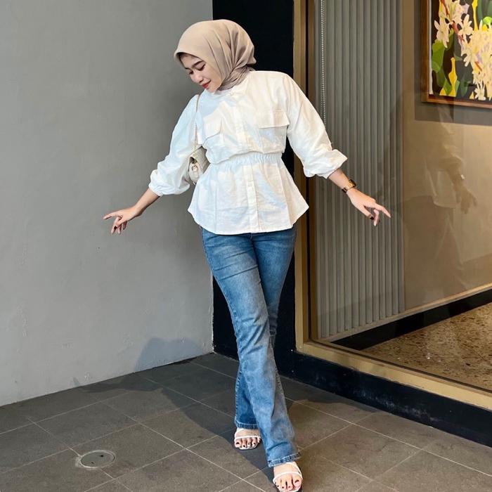 BEENA SHIRT LINEN MODEL KERUT BAGIAN PERUT - BROKEN WHITE, M = LD 100