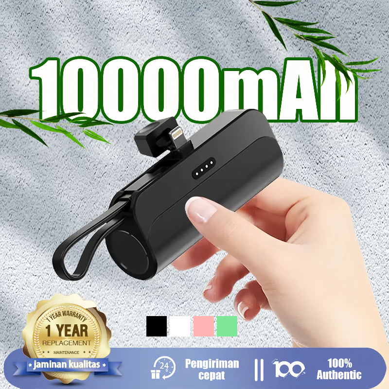 Powerbank 10000 Mah Mini Size Portabel Type-C Direct Charging +Lightning Wired Charging Mini Power Bank Portabel Mini Ba