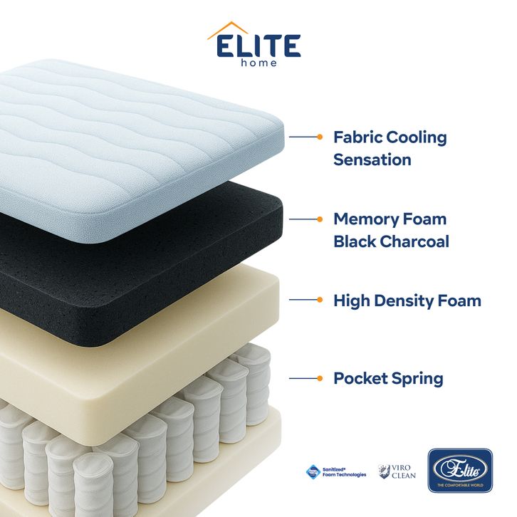 Kasur Dingin Elite SleepBox Cool Touch Alpine | Black Charcoal Memory Foam | Cooling Mattress in a Box