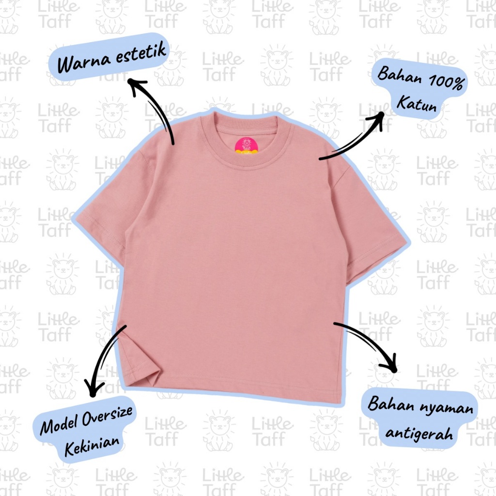 Little Taff - Kaos Polos Anak / Oversize Tee / Kaos Anak Polos Laki Laki Perempuan Katun Premium 1-8 Tahun / Kaos Polos