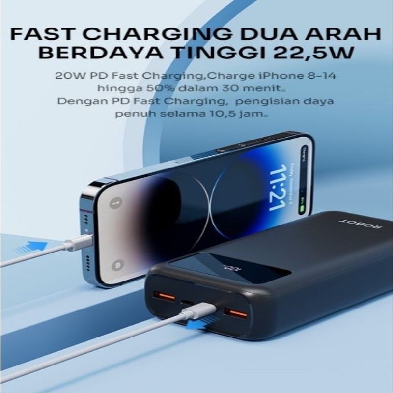 Robot Power Bank Rt32 30000Mah Powerbank 3Output & 2Input 22,5W Quick Charge Pd Qc3.0 Garansi Original Resmi