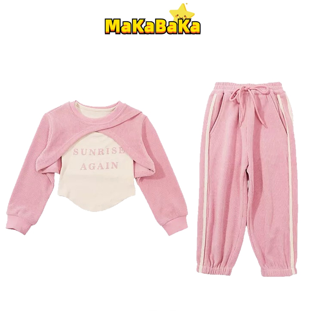 Makabaka Setelan Anak Esport Croptop Perempuan Fashion Setelan Sport 3Pcs Babyterry Atasan+Rompi+Celana Panjang 2 Warna