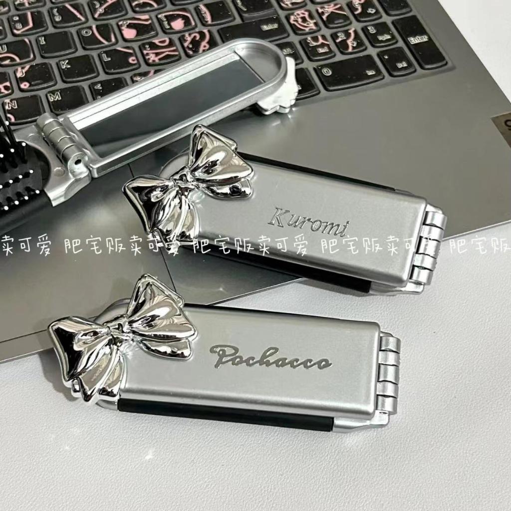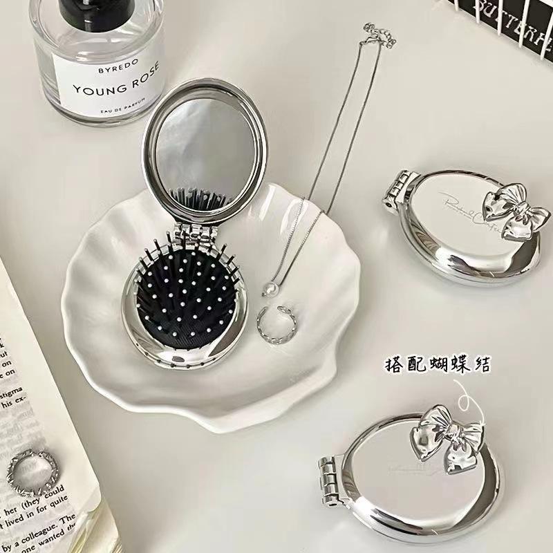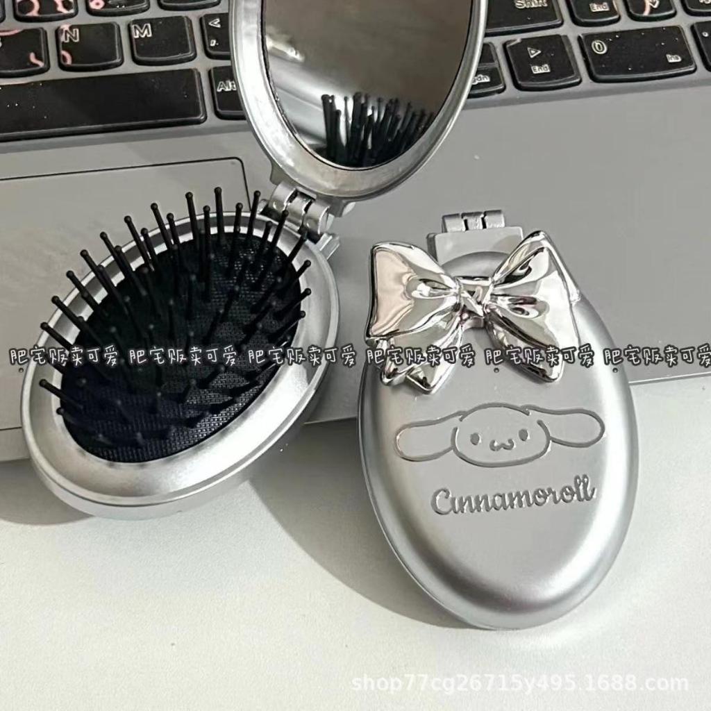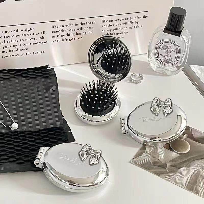 Sisir Lipat Kaca Silver Oval dan Persegi Karakter Lucu dan Berkelas