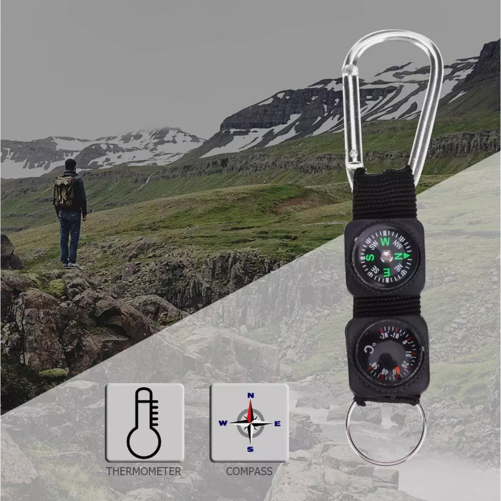 Mayitr Gantungan Kunci 3 in 1 Kompas Termometer Carabiner Key Ring - SF6244