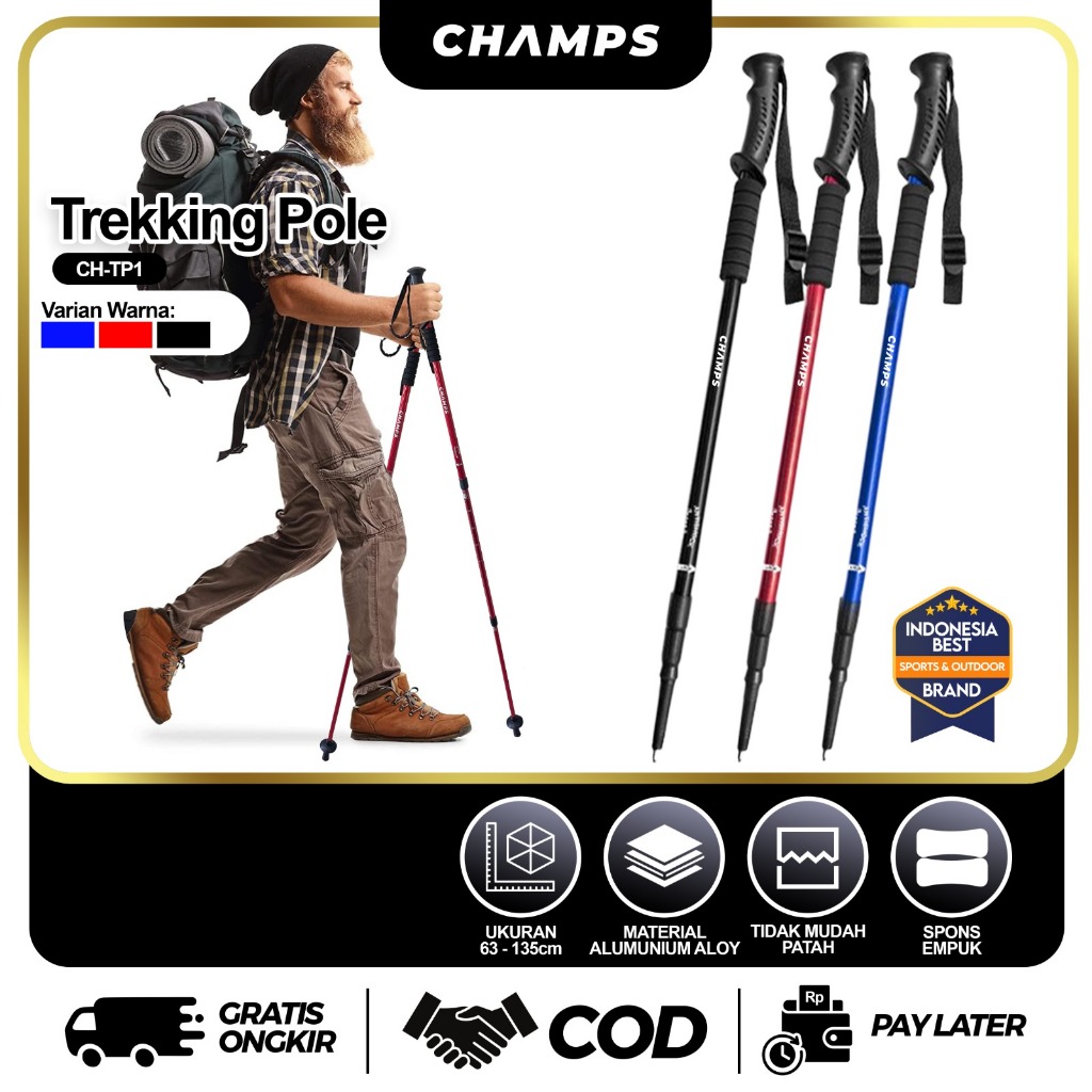 CHAMPS Trekking Pole Adjustable Tongkat Gunung Hiking Pendaki Ultralight Aluminium Alloy CH-TP1