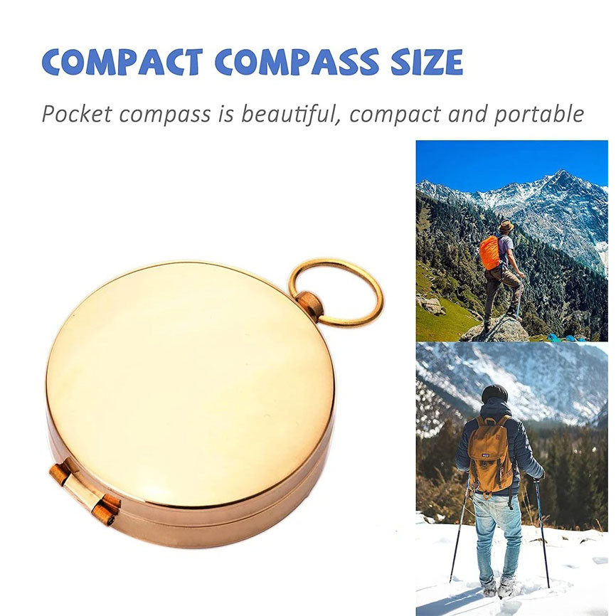 Happfist Kompas Vintage Pocket Portable Compass Luminous Light Copper - G50F