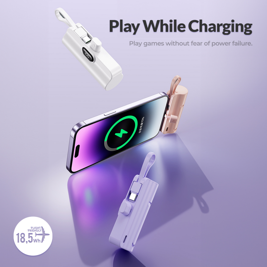 Uneed Minibox A5 5000Mah Powerbank Mini Lightning Type C Built In Cable - Upb408