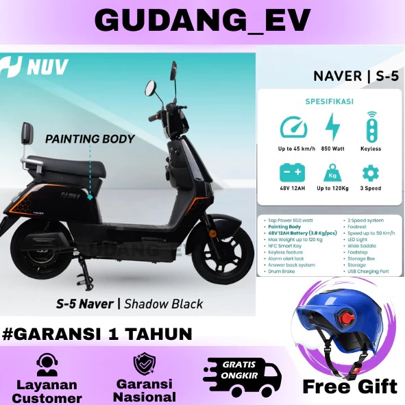SEPEDA LISTRIK NUV S5 NAVER GARANSI RESMI 1 TAHUN ANTI AIR PMB
