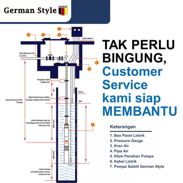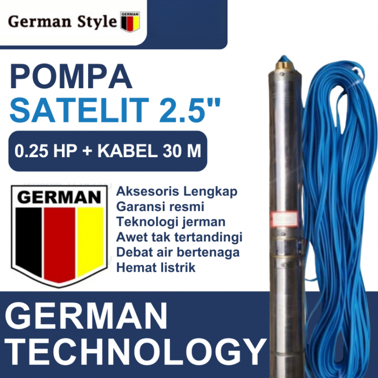 Pompa Satelit Air - Pompa Celup Satelit 2.5" German Style 0.25 HP - Pompa Air Submersible - Kabel 30 Meter - Mth15