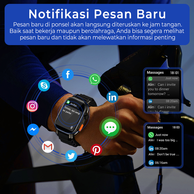 Fitfly jam tangan smartwatch pria Watch Ultra 40 Jam Tangan Pria Wanita Smart Watch Tahan Air Ip68 Jam Olahraga 2.01-inc