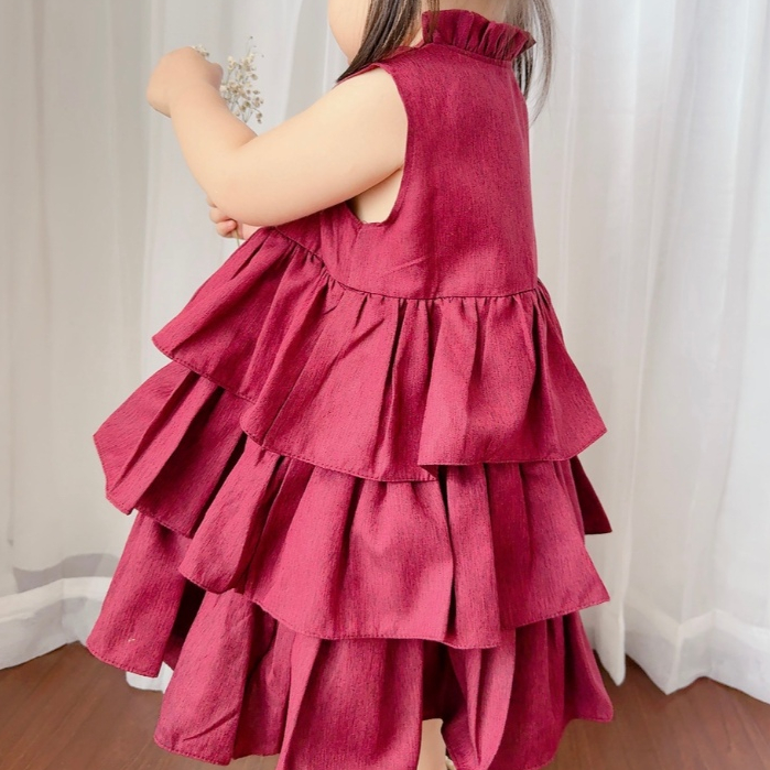Nidas Kids - Dress Helena Gaun Pesta Anak Perempuan Maroon Ruffle Premium Usia 1 2 3 4 5 Tahun