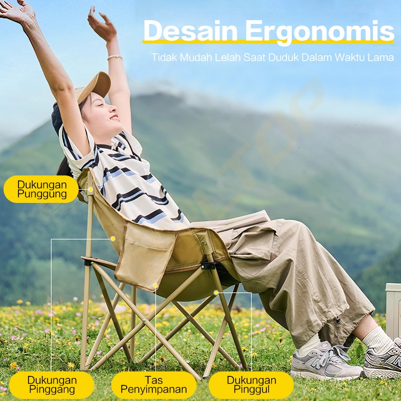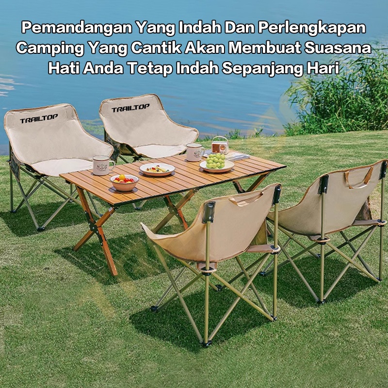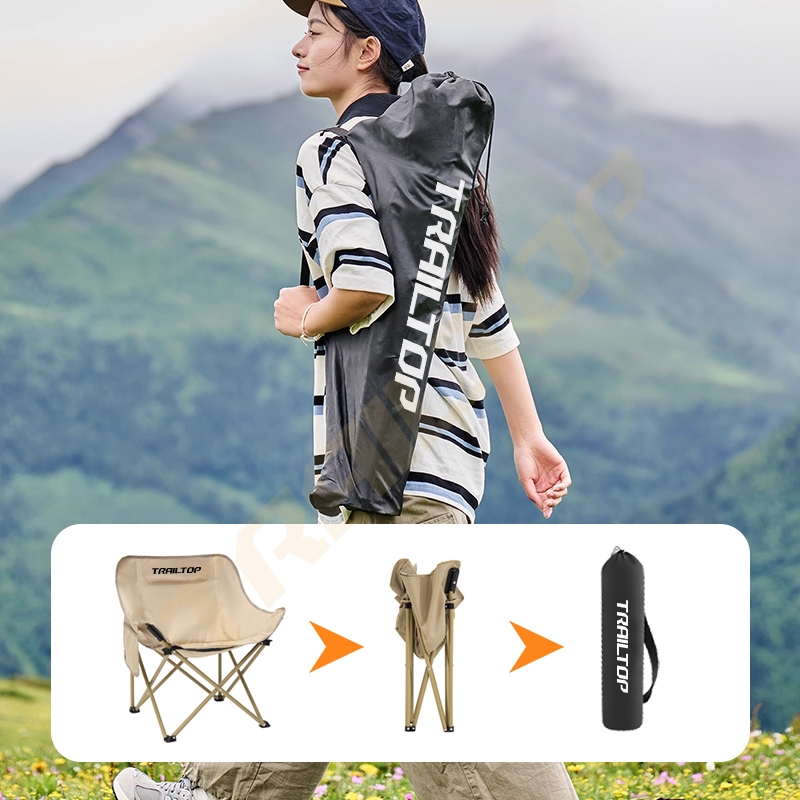 TrailTop Kursi Lipat Outdoor Bulat Lebar Kain Oxford 600D Tahan Aus Kursi Camping Beban 150KG