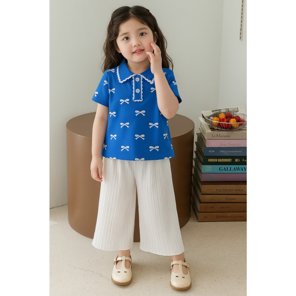 One Set Anak Model Kulot Dengan Atasan Kerah Bermotif Pita Kekinian Untuk Anak Usia 06 Bulan Sampai 10 Tahun
