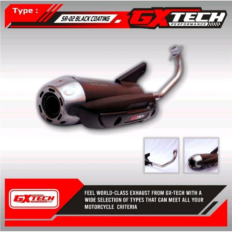 Knalpot GX Tech Performance SR 02 black coating suarabbas adem untuk Semua motor matick