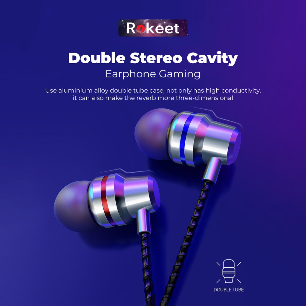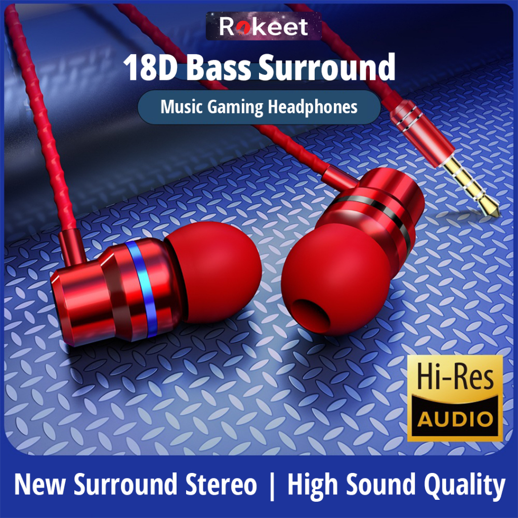 Rokeet Headset Earphone Gaming Mega Bass Wired Jack 3.5Mm Mic For Android Iphone Universal Original