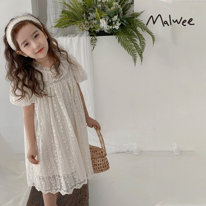 Malwee 2-10 Tahun Dress Anak Perempuan Lengan Baju Puff Gaun Putri Renda Yang Cantik Gadis Nt010