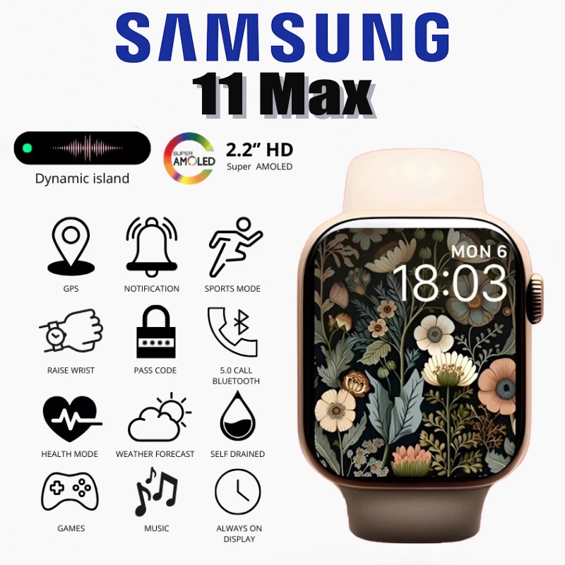 Samsung Smartwatch 11 MAX IP68 Tahan Air HD Touch Screen Monitor Detak Jantung Olahraga Bluetooth Jam Tangan Pintar