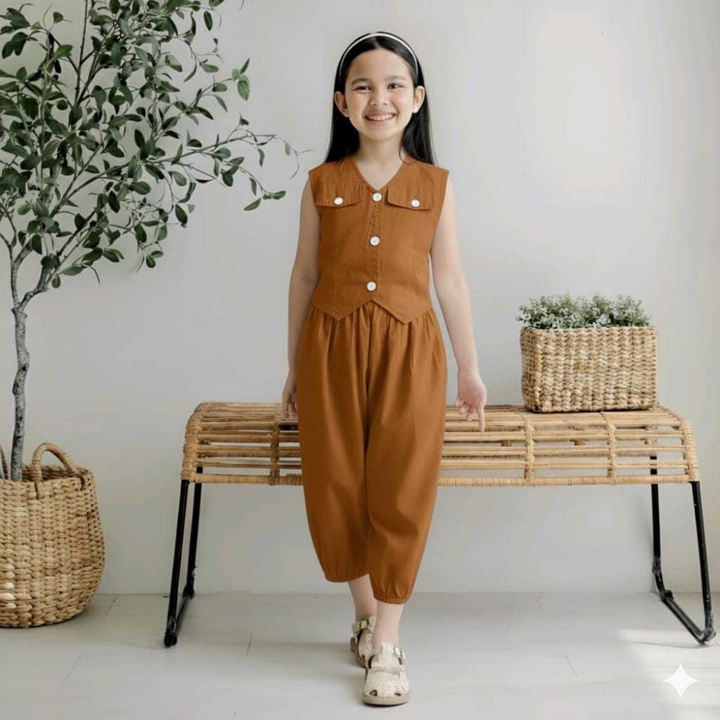 Olivia Set One Set Anak Perempuan Import 3-12 Tahun Katun Linen | Setelan Anak Perempuan