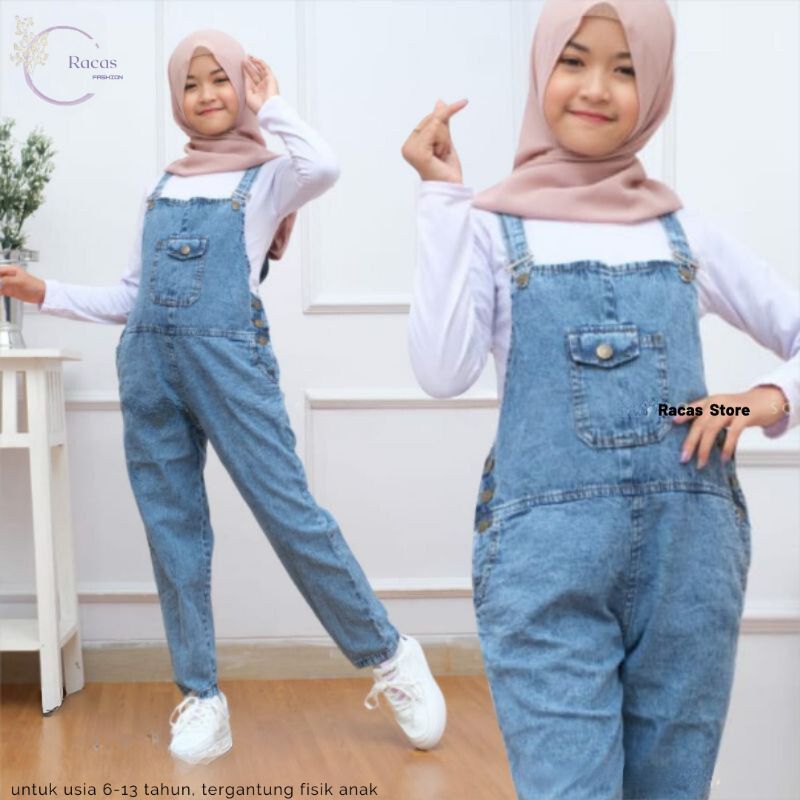 Overall Anak Perempuan Usia 4-13 Tahun Jumpsuit Jeans Celana Kodok Terbaru