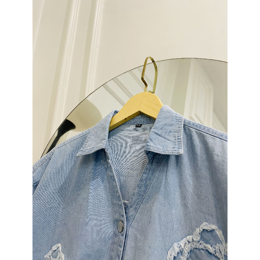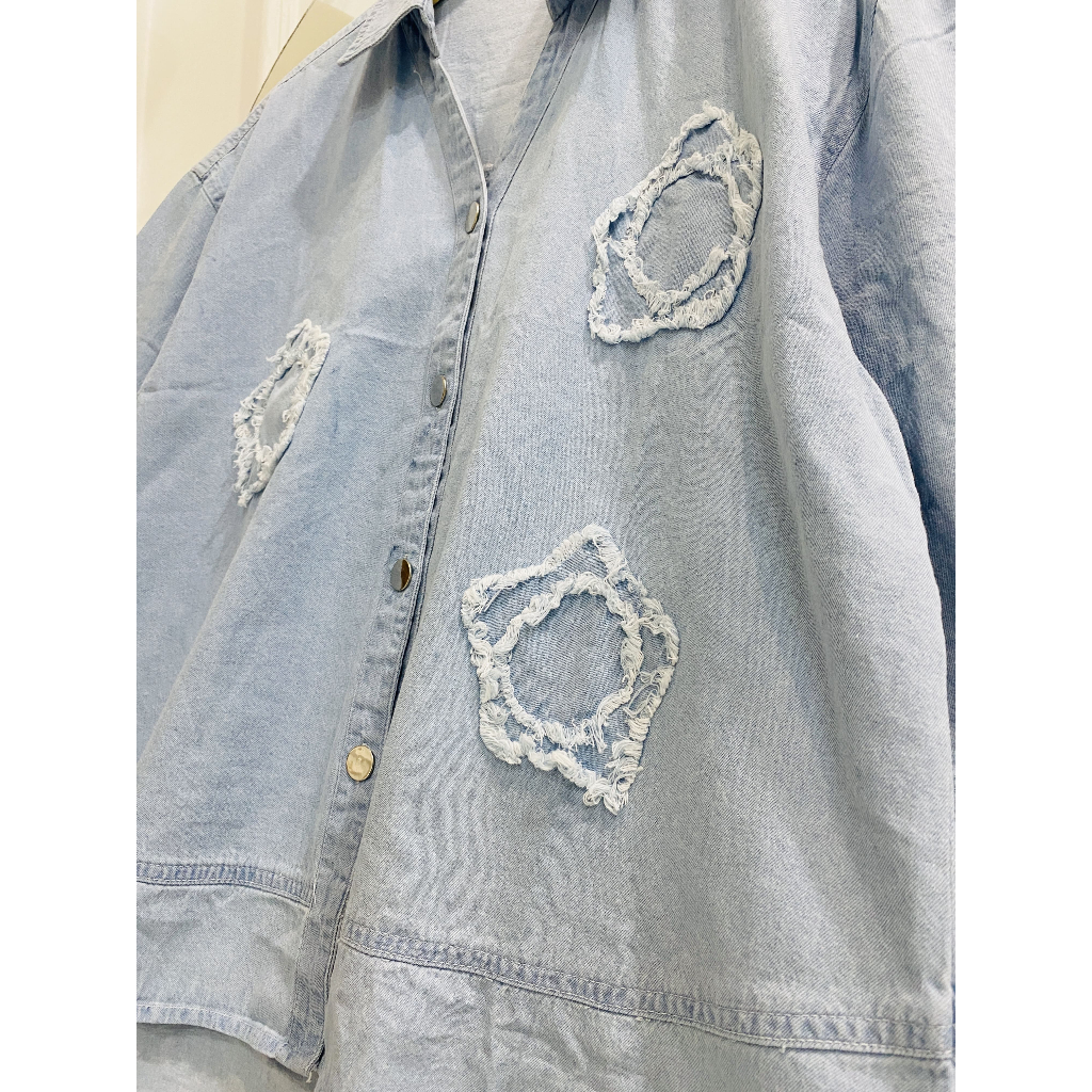 MELTZ.ID ATASAN KEMEJA JEANS OVERSIZE POLOS PERCA BUNGA LENGAN PANJANG WANITA DEWASA BAHAN JEANS PREMIUM