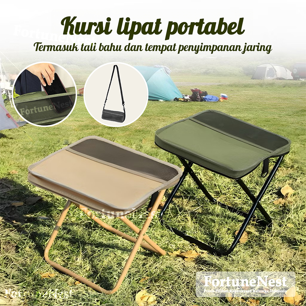 [Tali bahu] Kursi Lipat Portable door Bangku Lipat Mini Bantalan Beban120kg Kursi Dompet Holding Chair Untuk Mancing Camping Desain Full Lipat Dilengk4ppidengan penyimpanan jala