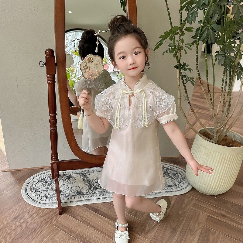 Ready New Gaun Anak Perempuan Gaya Etnik Gaun Gaya Barat Musim Panas Selebriti Baru Puff Sleeve Mesh Gaun Putri Dress Ru