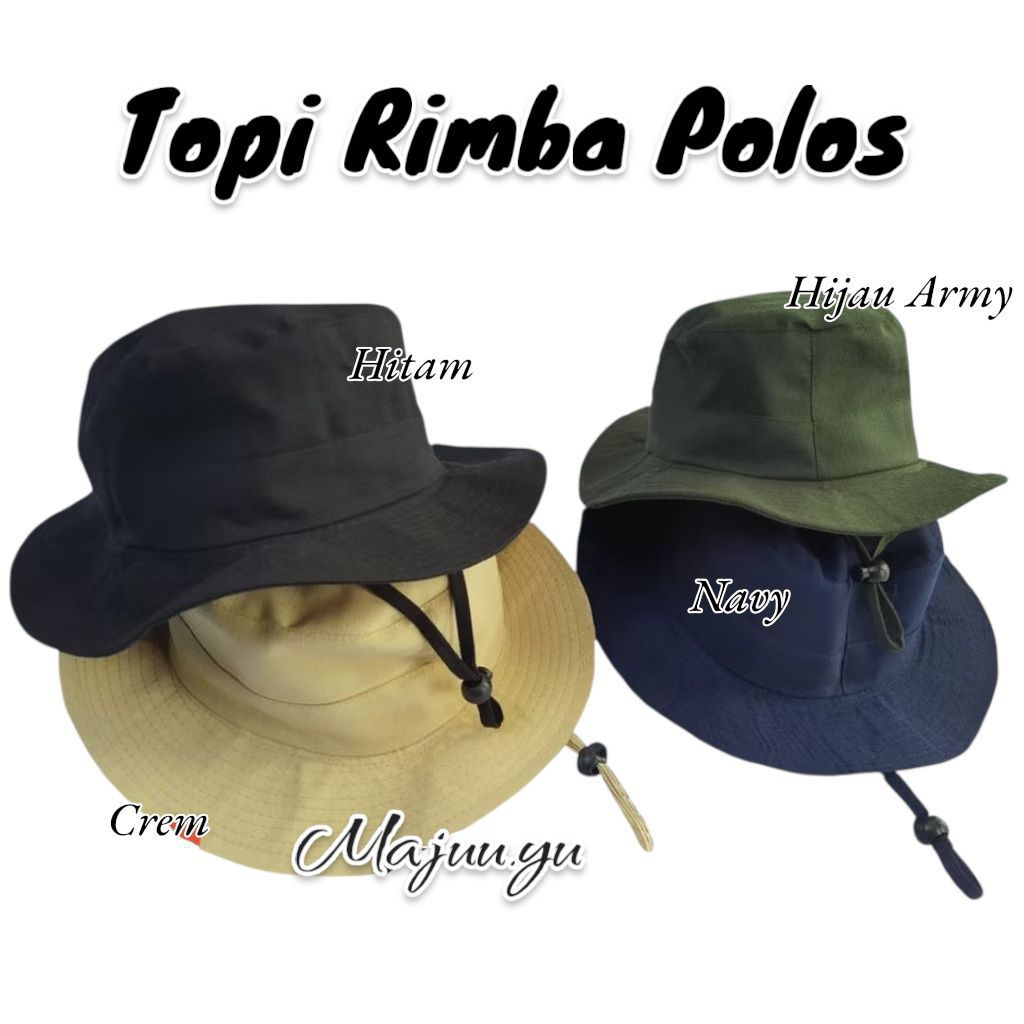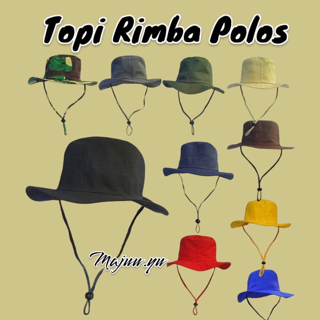 Topi Gunung Rimba Tali Hiking Hutan Camping Hat Tali Hitam Cream Hijau Army Coklat Biru Navy Merah Kuning Abu Grey Lorengbound Lapangan Kempiqng door Pria Wanita