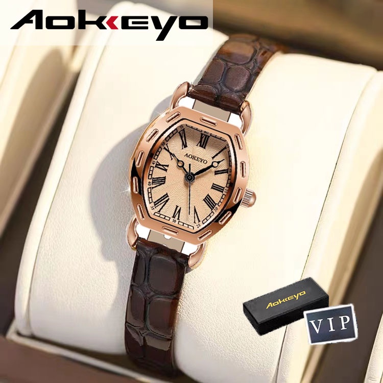 AOKEYO S053 Jam Tangan Wanita Klasik Mode Display Kuarsa Santai Jam Tali Kulit Tahan Air Jam Tangan Cewek (Free BOX+Kartu )