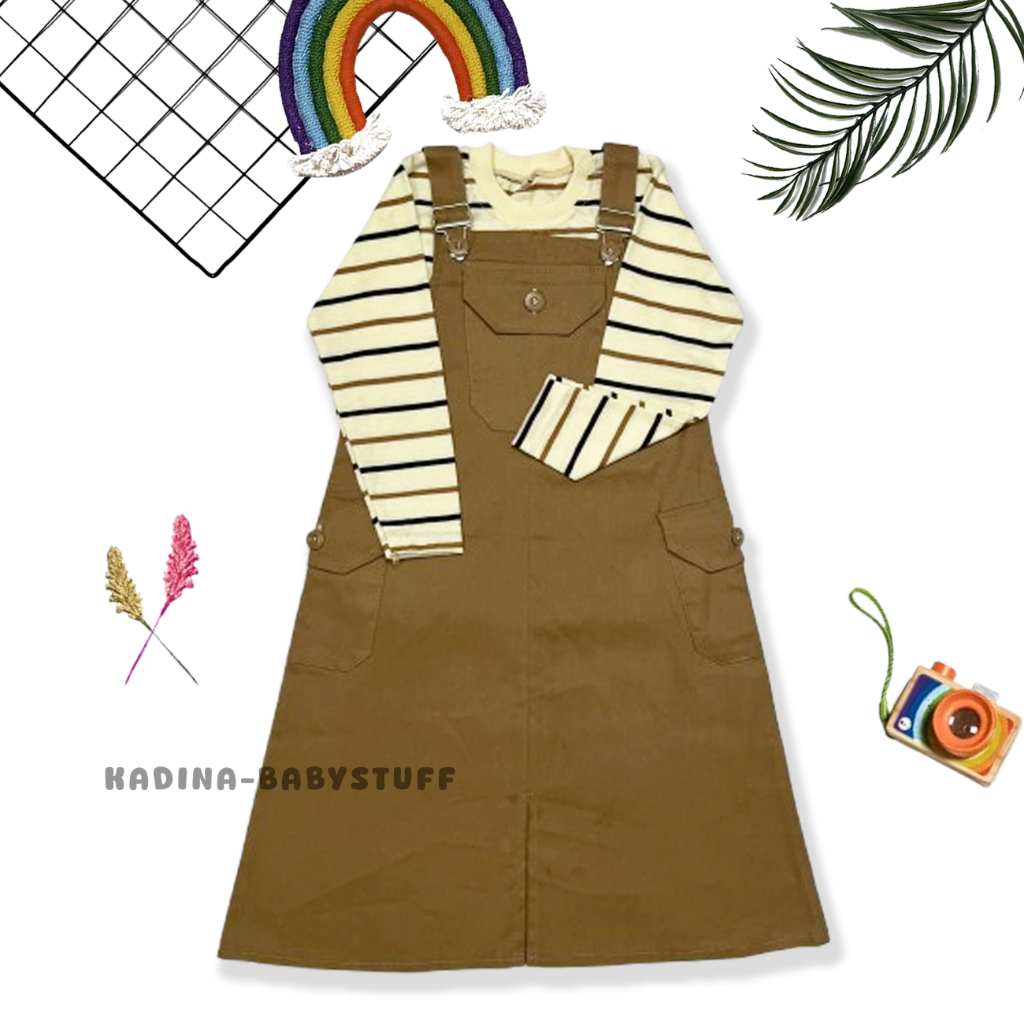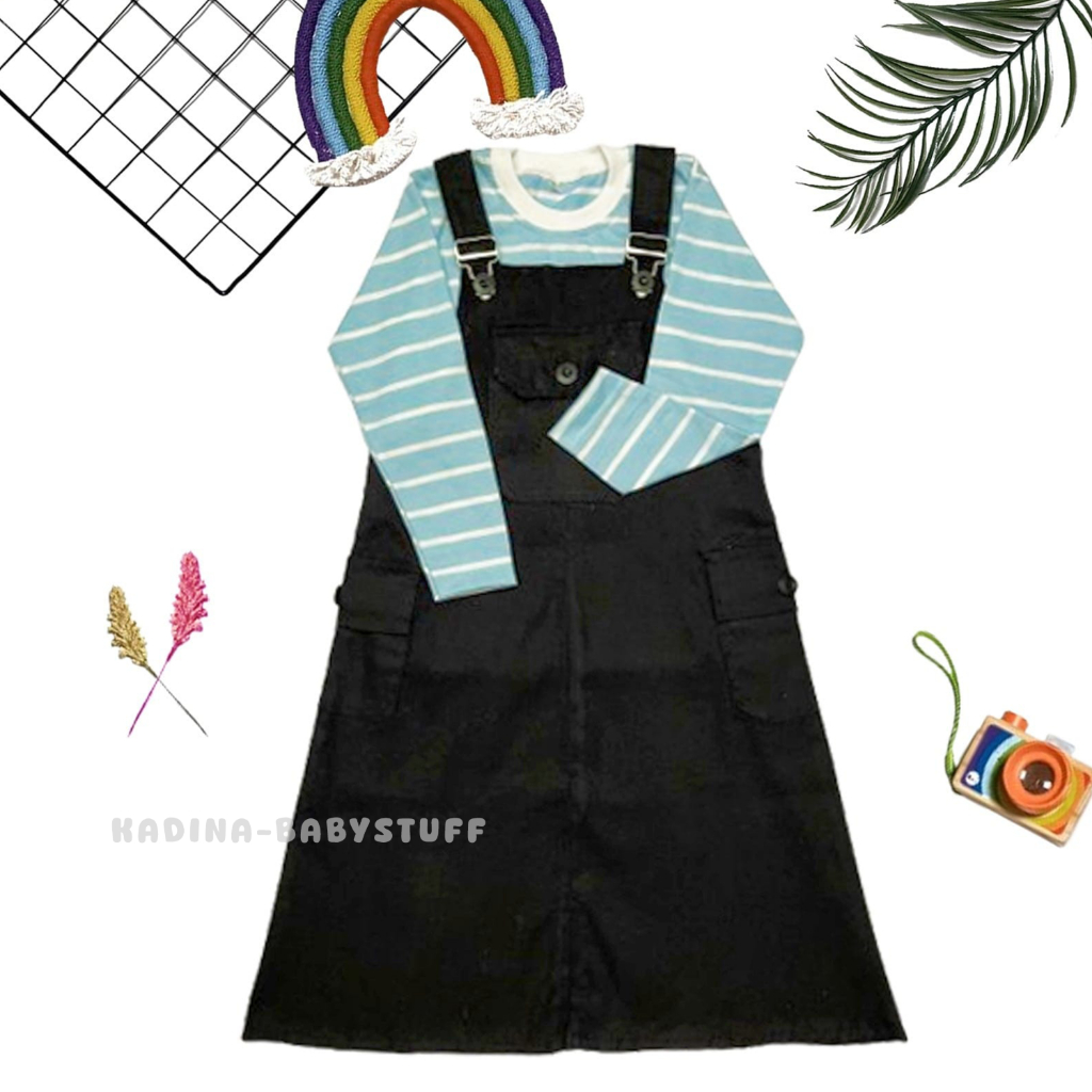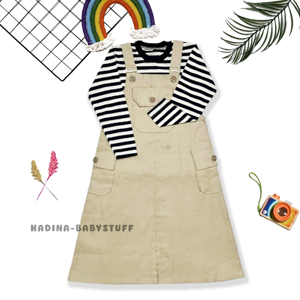 Overall Rok Katun Anak / Setelan Ovrok Anak Terbaru / Jumpsuit Anak Perempuan / Kaos Stripe Anak Usia 1-12 Thn
