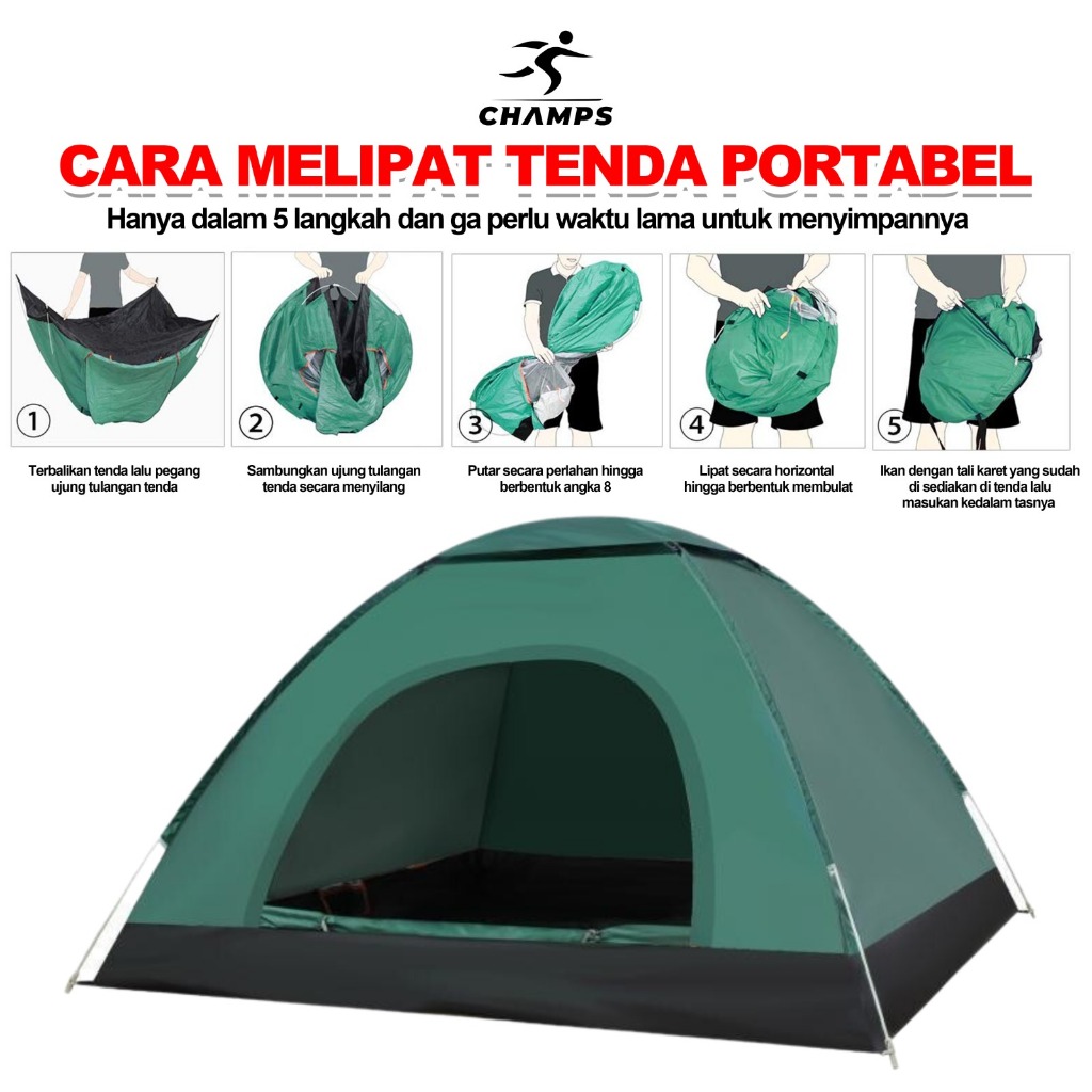 CHAMPS Tenda Camping Murah – Tenda Lipat 2–4 Orang Anti Air Ringan & Praktis untuk door & Gunung