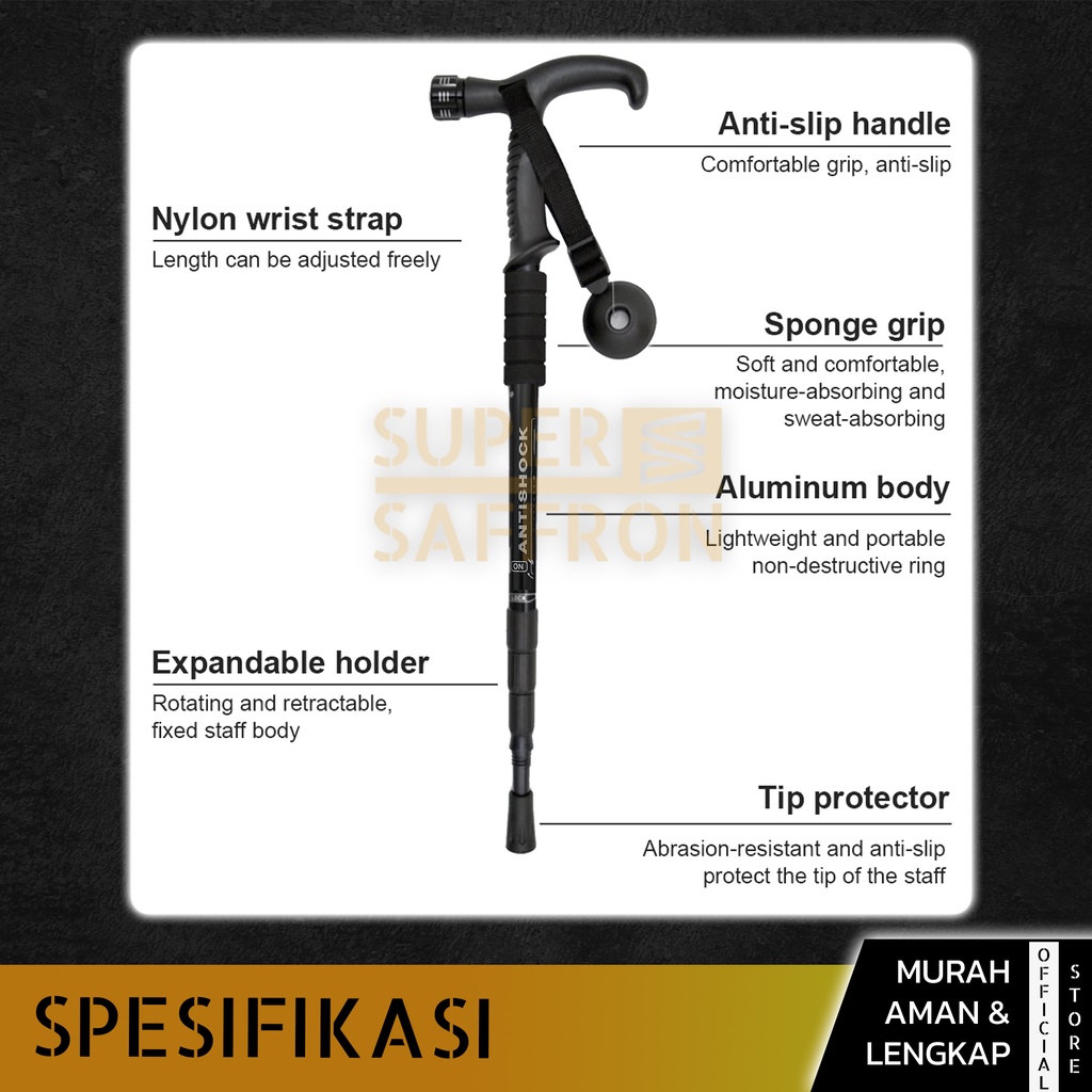WELITE Tracking Pole Senter 110cm Antishock Lampu LED Tongkat Gunung Peralatan Mendaki