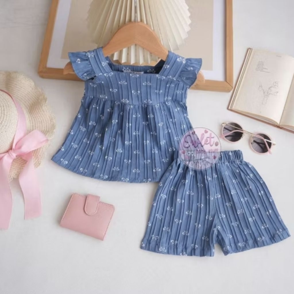 Rabbitkids - Emelly One Set / Setelan Anak Perempuan Babydoll / Setelan Anak Kutungan / Setelan Anak Full Motif