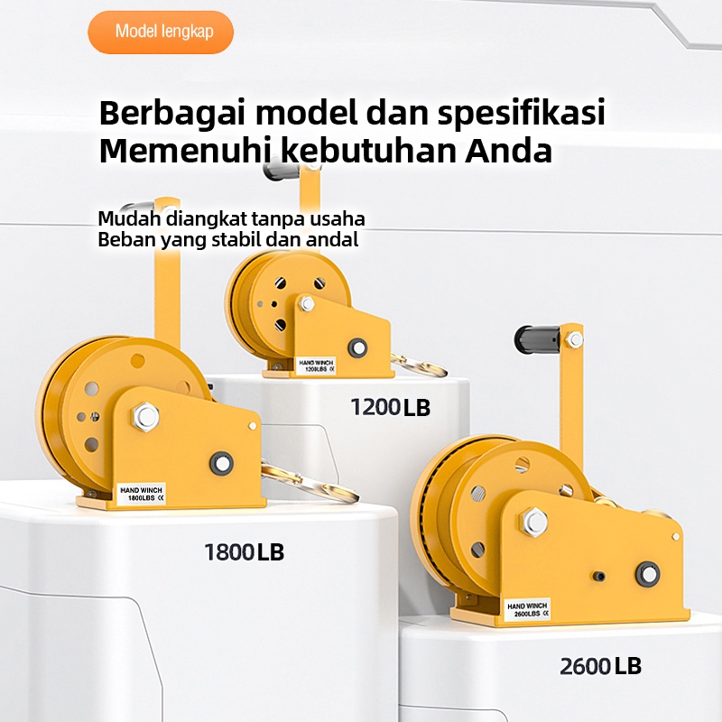 PPD Hand Winch Katrol Winch Manual Engkol Tangan Dua Arah Mengunci Sendiri Traksi Derek 1200/1800lbs Derek Pengangkat Wi