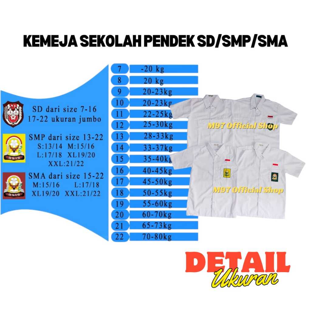 Baju Putih SMA Lengan Pendek Seragam Sekolah Kemeja Sekolah SMA Laki Bed Bordir Kain Oxford Premium