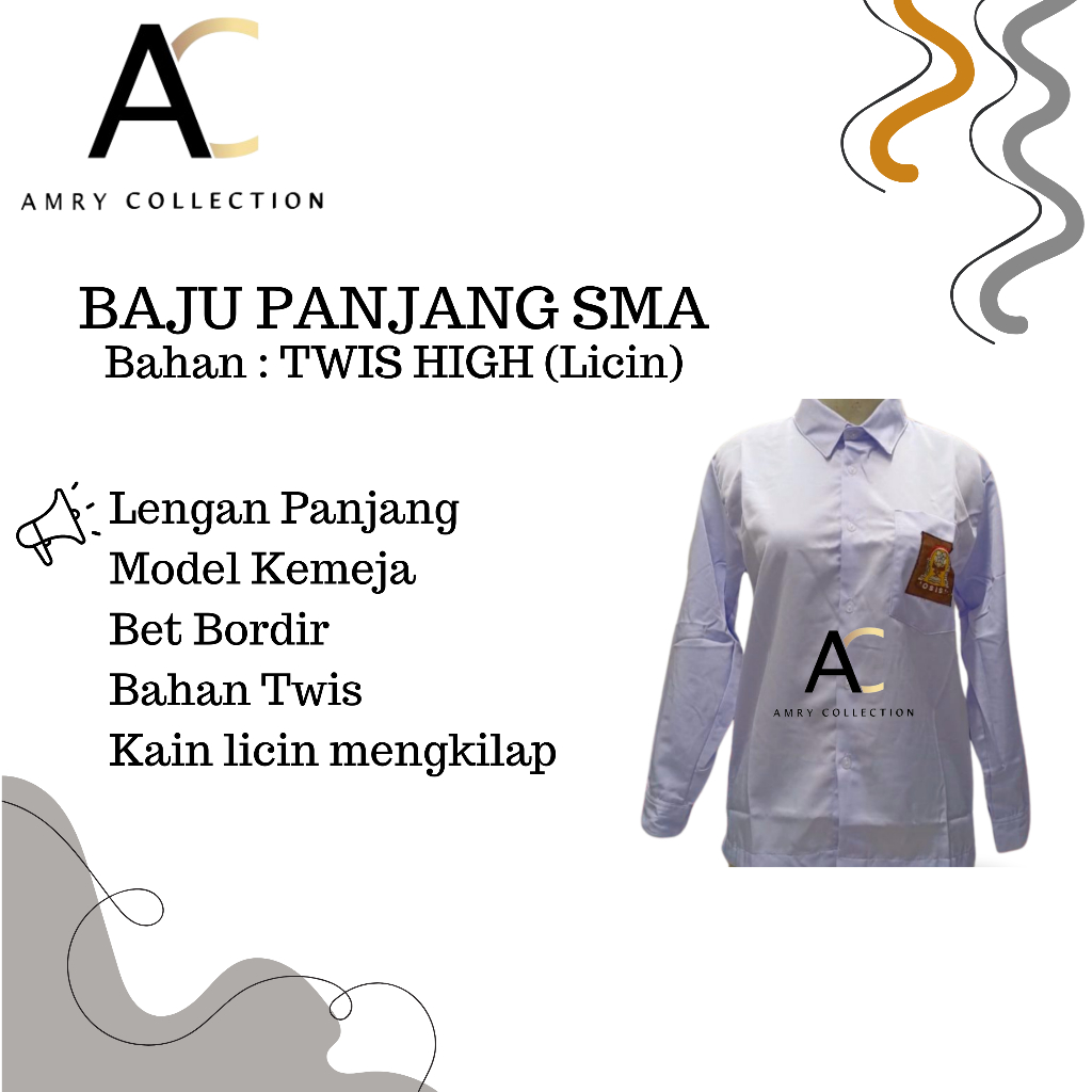 Seragam Sekolah Kemeja Panjang Putih SMA Twist/licin By.amrycollection (TWIST)