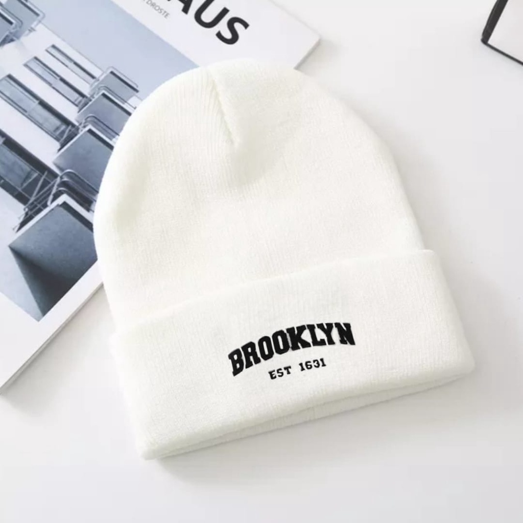 kupluk beanie Unisex Cap Hat Soft Material Bordir Brooklyn terbaru