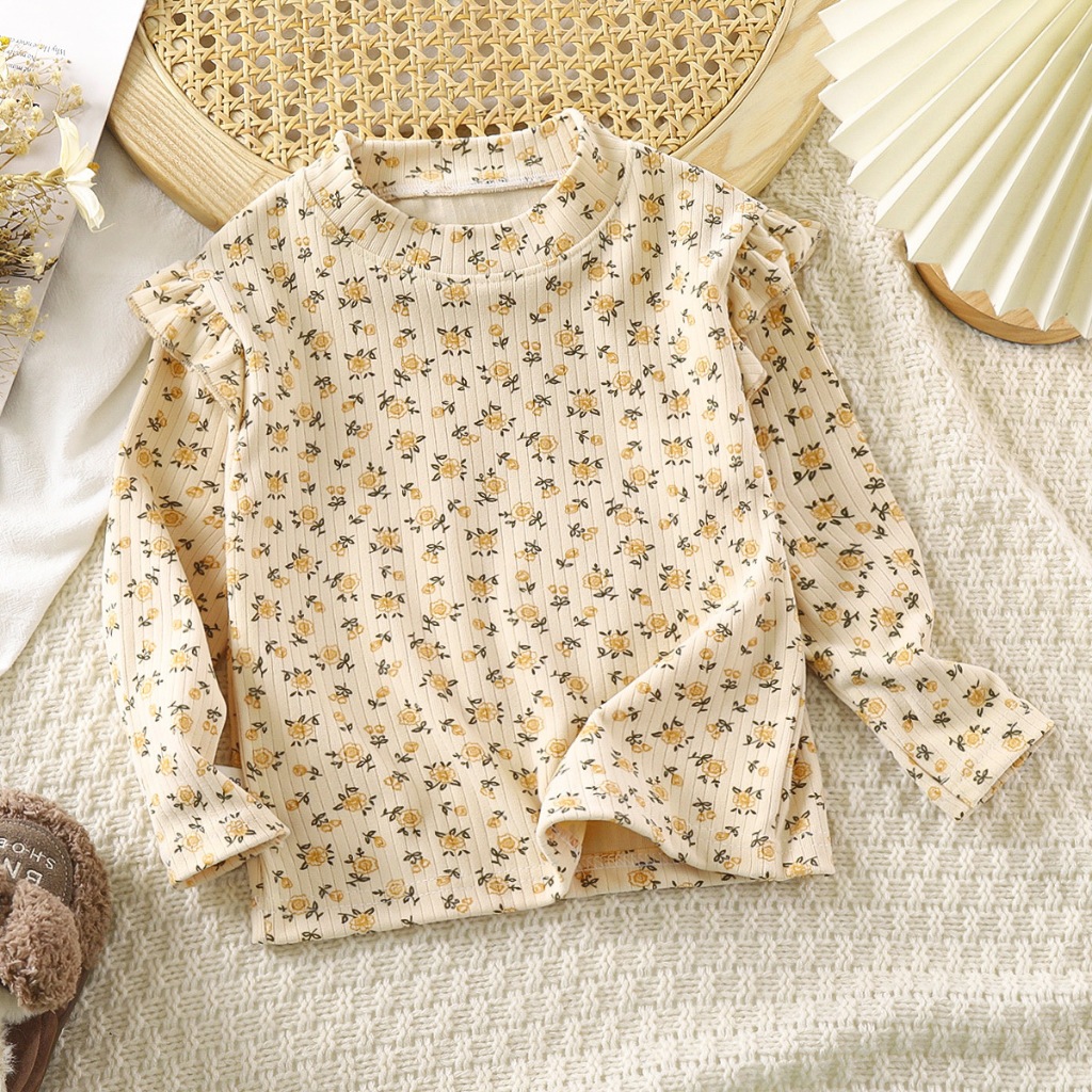 Puncak 12.12 Bykiddos – Atasan Anak Perempuan Lengan Panjang Tangan Rampel Motif Lucu Gaya Modis