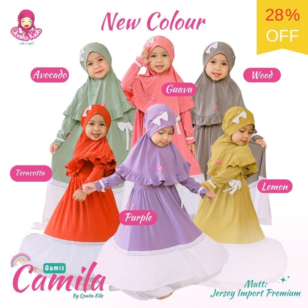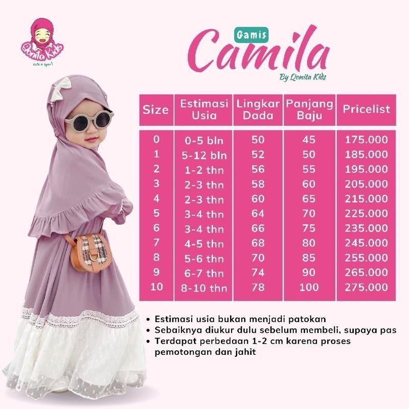 Qonita Kids - Camila Set Seri 2 (0 - 10Th) Gamis Set Hijab Baju Gamis Anak Perempuan Gamis Bayi New Born Usia 0 1 2 3 4