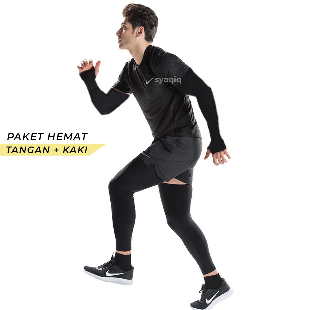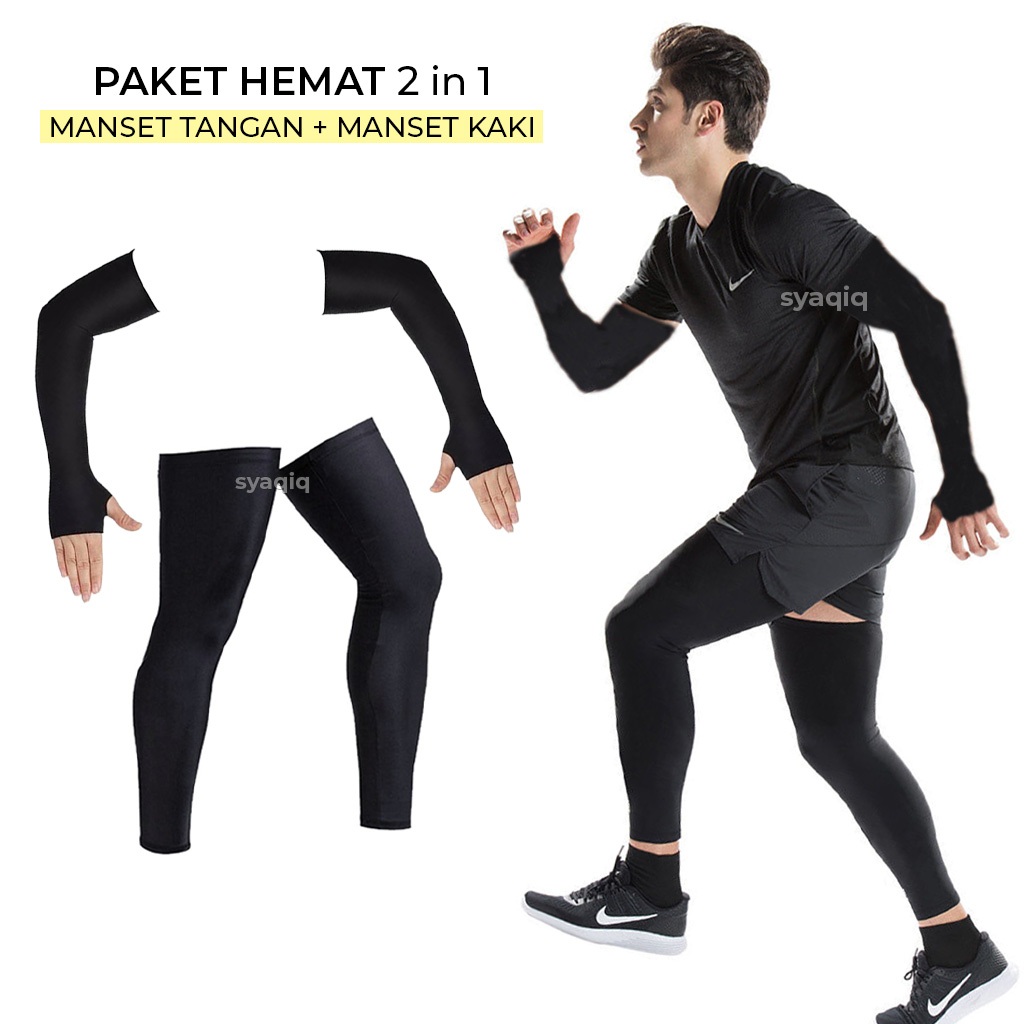 PAKET HEMAT 2 IN 1 MANSET TANGAN HANDSOCK ARM SLEEVE MANSET KAKI LEG SLEEVE LEG WARMER PELINDUNG LUTUT BASELAYER PERLENGKAPAN OLAHRAGA RUNNING JOGGING HIKING CLIMBING
