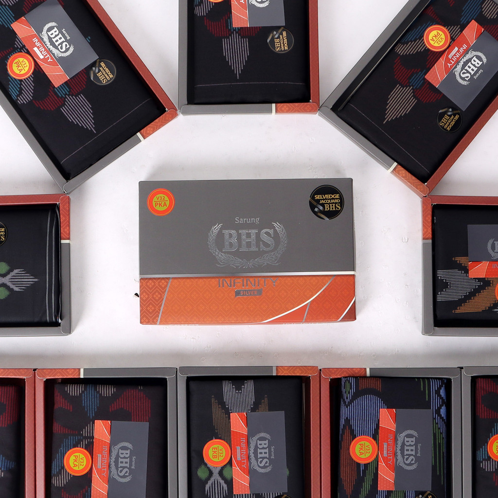 [Star] Paket Grosir 10 PCS Kain Sarung BHS Infinity Silver Pria Dewasa Motif V32 PKA Black Series Original Songket Tenun