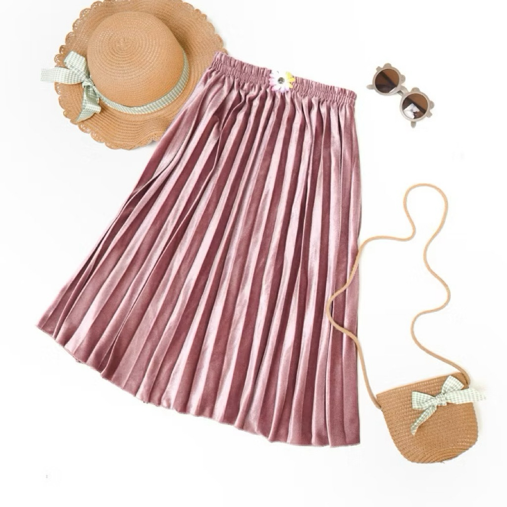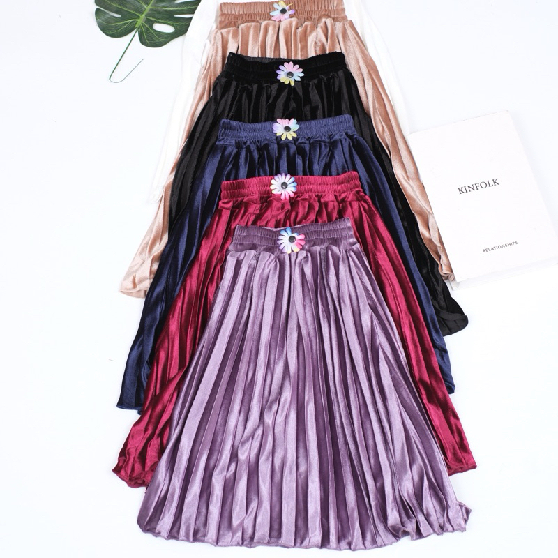 Rok Anak - Rok Plisket Bludru Anak Premium - Rok Anak Perempuan 2 - 10 Tahun