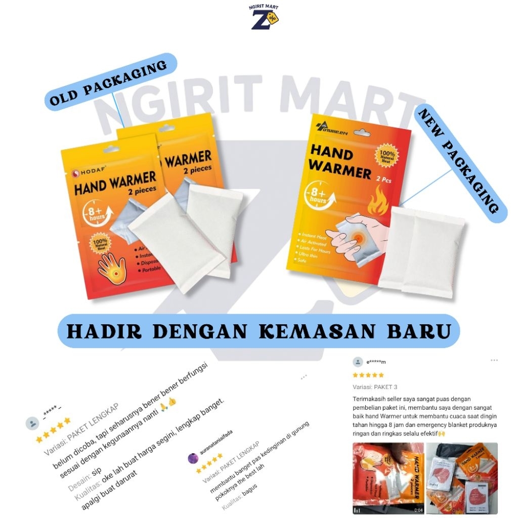 Paket Siaga door Anti Hipotermia Hand Warmer 8 Jam + Jas Hujan + Blanket Emergency + P3K Komplit