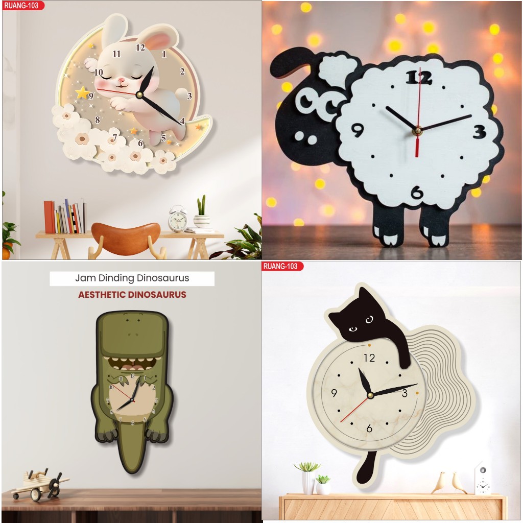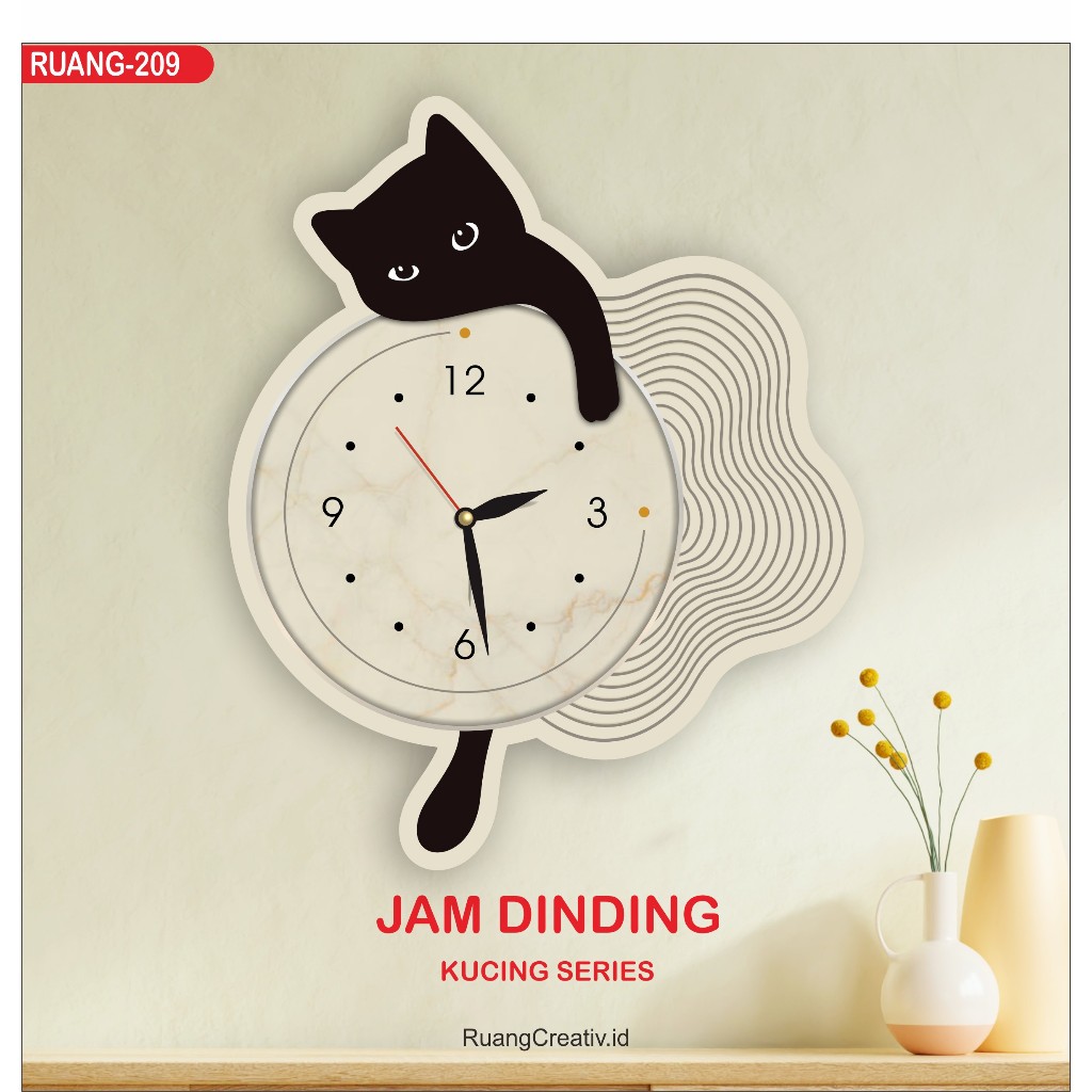Ruang271 - Jam Dinding Clock Ukir kucing Hiasan Dinding Ruang Tamu Kamar tidur anak