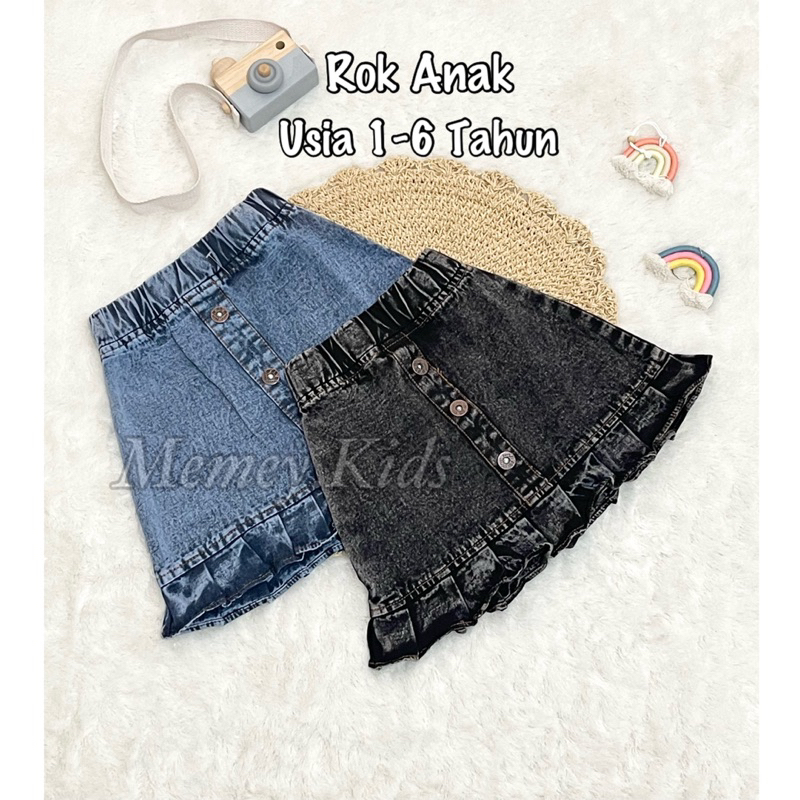 Rok Jeans Anak Perempuan / Rok Rempel Anak / Rok Jeans Denim / Rok Jeans Pinggang Karet