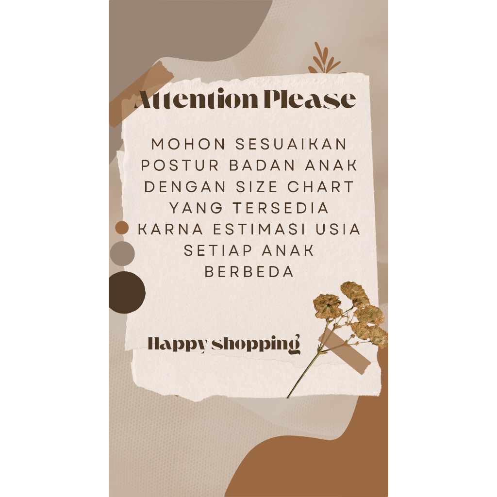 S (est. 3-4 tahun), M (est. 4-6 Tahun), L (est. 7-12 Tahun), XL (est.13-15 Tahun)