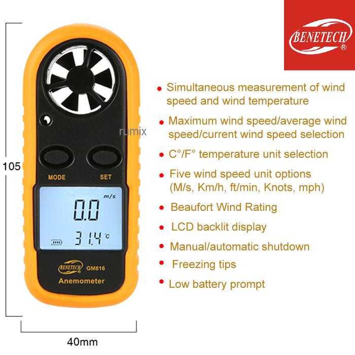 Digital Anemometer Pengukur kecepatan angin thermometer Anemo Meter