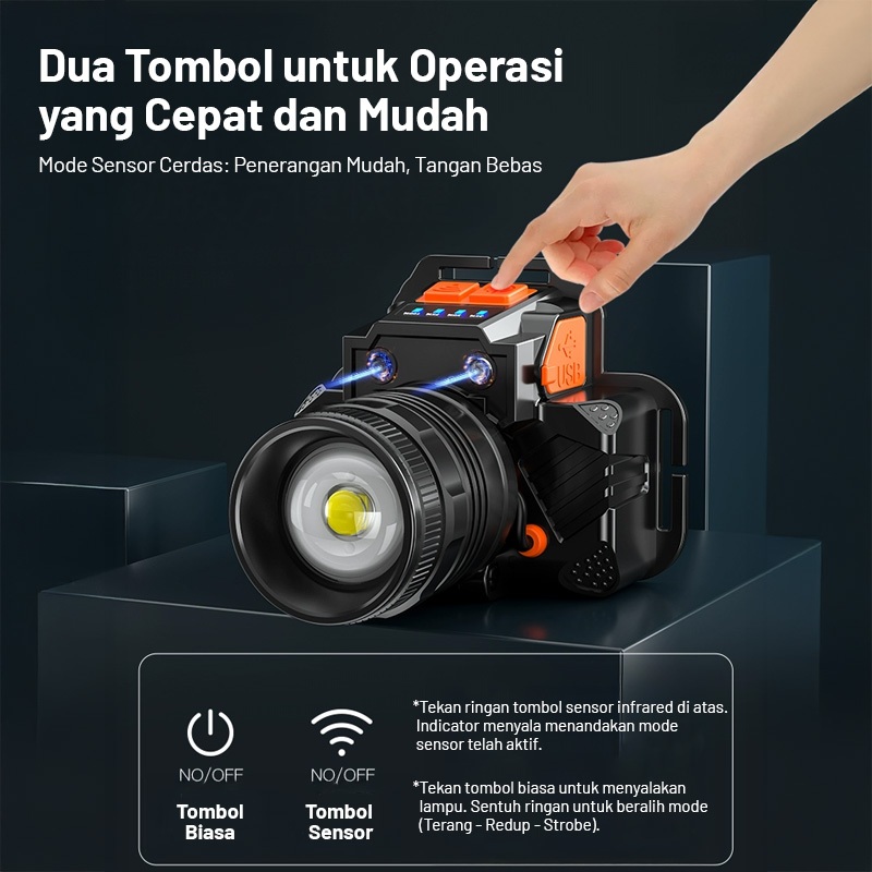 Senter Kepala /Lampu Senter Kepala/Baterai 6000mAh 20Watt Senter Super Serang Daya Tahan Baterai Yang Sangat Lama ONEPR
