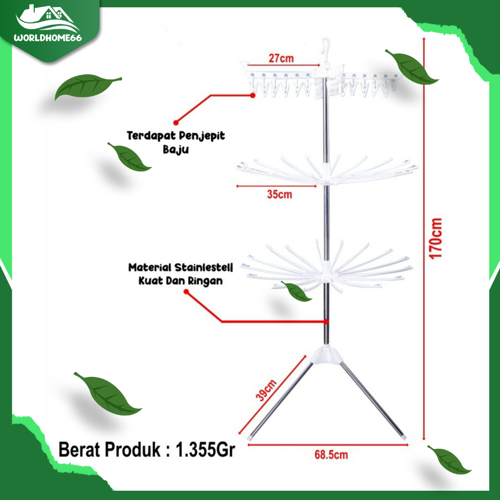 Worldhome Jemuran Menara 3 Susun Jemuran Lipat Minimalis Jemuran Baju Kaos Kaki Celana Dalam